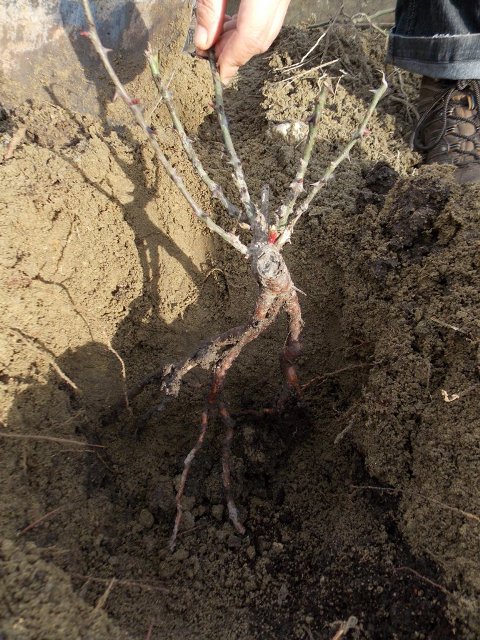 Sadiko vrtnice z golimi sadikami postavimo v jamo.